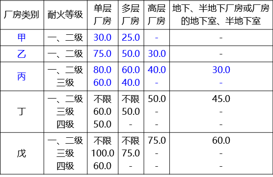 答察解析: 厂房内的最大安全疏散距离(m)