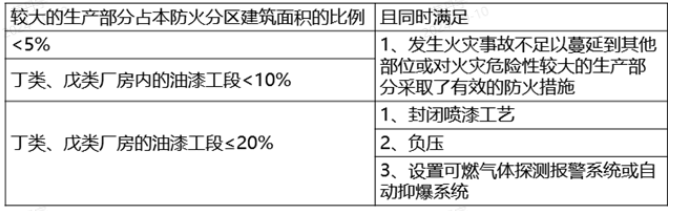 | 火灾危险性较大的生产部分占本层或本防火分区建筑面积的比例 | 且同时满足 |