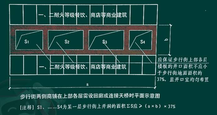 答察解析: 步行街端部设可开启门窗,门窗开口面积至少占外墙面积的1/2。