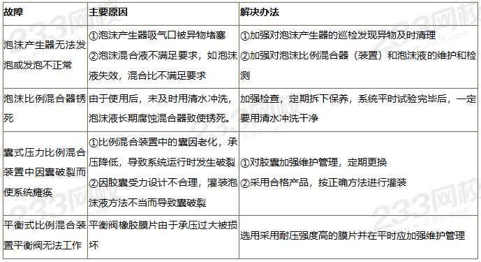 真题考点:泡沫灭火系统-系统常见故障分析及处理