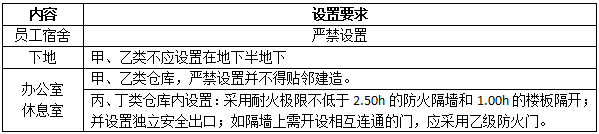 通用要求:民用建筑内不应设置经营、存放或使用甲、乙类火灾危险性物品的商店、作坊或储藏间等。民用建筑内除可设置为满足建筑使用功能的附属库房外,不应设置生产场所或其他库房,不应与工业建筑组合建造。