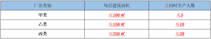 3.丙类地上生产场所,一个防火分区或楼层的建筑面积大于250m²或同一时间的使用人数大于20人,