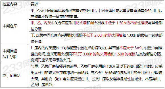 2)中间仓库、中间储罐和变、配电站在厂房的布置