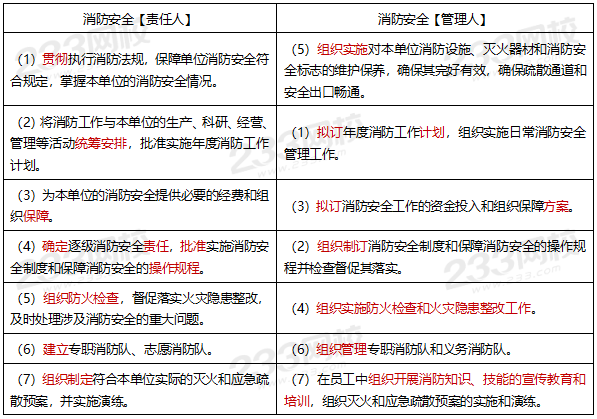 1、消防安全责任人与消防安全管理人的消防安全职责