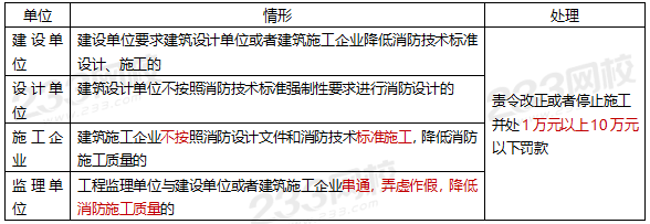 2、关于对违法进行消防设计、施工及工程监理的处罚规定【记忆口诀】一降低