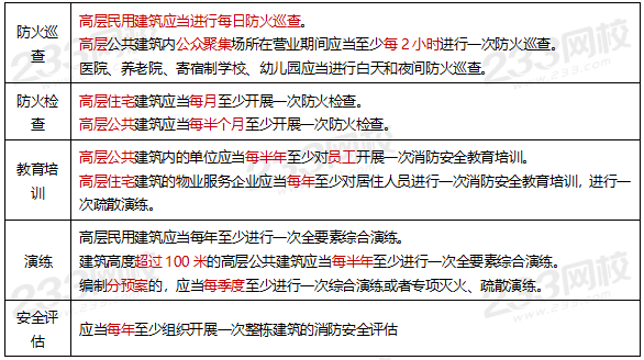 2、防火巡查、检查,消防安全宣传教育培训和演练频次