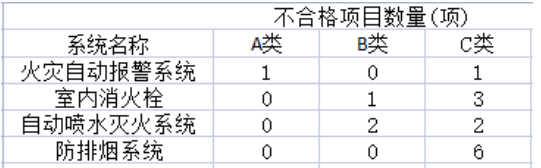 过期考点 41、某消防技术服务机构对某商场的消防设施进行了验收检测,各消防系统的不合格项目数量汇总如下: