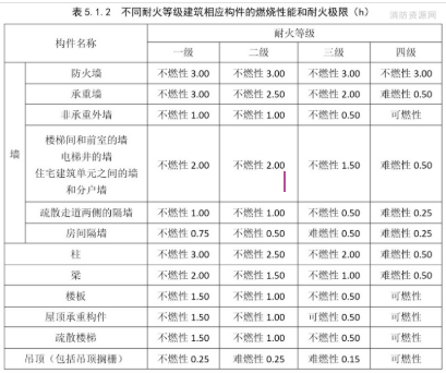 表5.1.2 不同耐火等级建筑相应构件的燃烧性能和耐火极限(h)