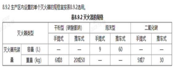 8.9.3 工艺装置内手提式干粉型灭火器的选型及配置应符合下列规定: