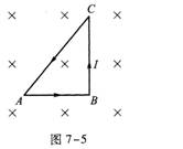 19、如图7—5所示,匀强磁场垂直于纸面,磁感应强度B=0.2 T.直角三角形线圈ABC在纸面上,AB=0.03 m,BC=0.04 m,通电电流I=5 A.AC边上所受的磁场力为 N,整个线圈所受的磁场力为 N.