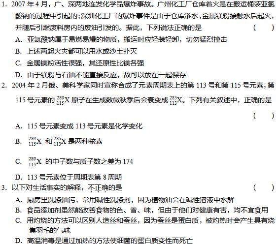 2018年成考高起点《化学》单项选择训练题(2)