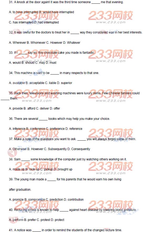 2016年11月成人学位英语考试真题(统考卷):词汇语法
