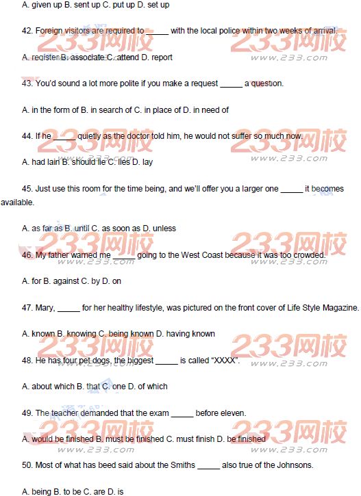 根据网友提供真题,2016年11月6日学位英语考试词汇语法真题(统考卷)如下: