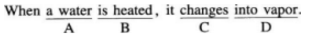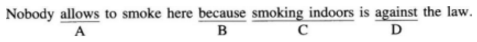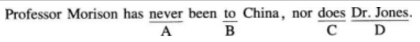 Directions: Each of the following sentences has four underlined parts marked A, B, C andD. Identify the one that is not correct. Then blacken the corresponding letter on the Answer Sheet.