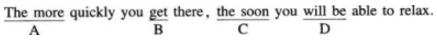 【解析】本题考查句型the+形容词比较级…the+形容词比较级…的用法。在这个句型中,并列分句都需要使用比较级。本句中,前半句使用了The more,后半句则用了原形the soon,这明显是不对的。因此选C,改成the sooner。