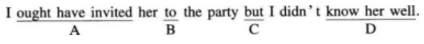 【解析】本题考查虚拟语气的用法。跟过去事实相反时,主句谓语动词用should(ought to,would,could,might)+have+过去分词。本句中,使用ought是不正确的,因此选A,改成ought to/should have invited。