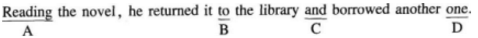 【解析】本题考查时态搭配。现在分词短语Reading the novel表示伴随状态,也就是he正在做的事情,但根据后文,他已经读完了书并且归还,所以时态有误。因此选择A,改为After reading。