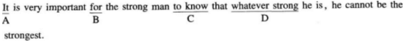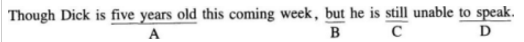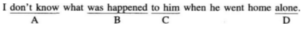 Directions: Each of the following sentences has four underlined parts marked A, B, C andD. Identify the one that is not correct. Then blacken the corresponding letter on the Answer Sheet.
