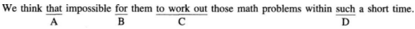 解析:【译文】我们觉得他们在那么短的时间内完成那些数学题是不可能的。