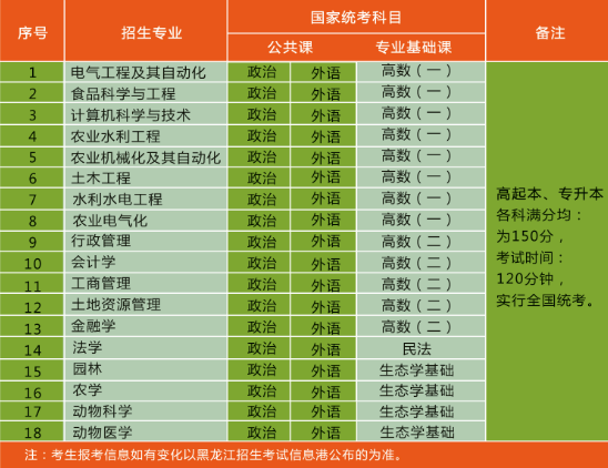 注:东北农业大学成人教育继续招生。凡第一志愿报考我校艰苦行业(带★号专业为艰苦行业)的考生在成人高考录取时,可享受较大幅度降分录取照顾政策。