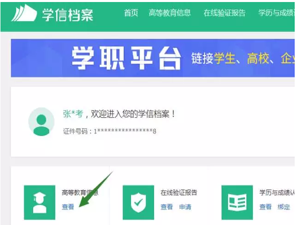 第三步:登陆后点击高等教育信息 查看按钮,那么本人相应的学籍信息就出现了!