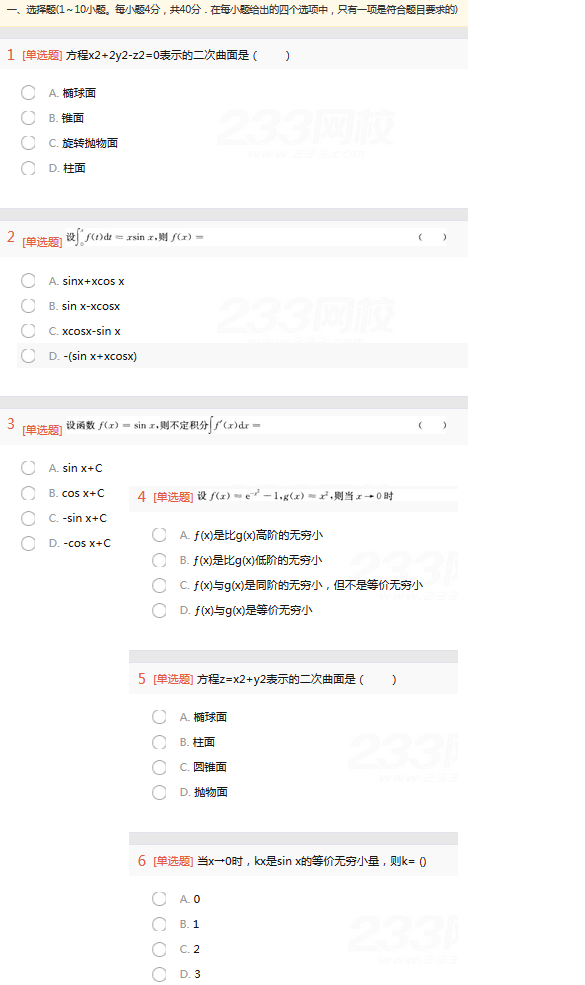 点击查看:2017年成人高考专升本高等数学一考试考前押密试题及答案一