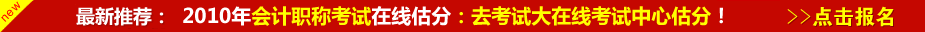 考试大将在考试后时间发布2010年初中级会计职称考试试题和参考答案,以供给为考生估分。考生不仅可以在考后时间查看考试试题,还可以通过考试大在线考试中心在线估分,还可以通过考试大初级会计职称论坛与各位考友交流心得。