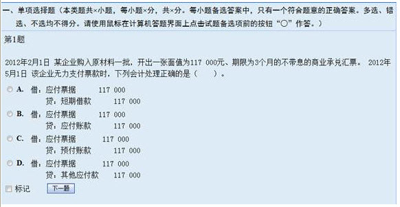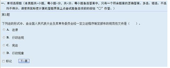 单项选择题答题时,考生直接用鼠标点击备选项中的认为正确的一个选项前的单选按钮即可。如果需要修改答案,用鼠标点击其他备选项即可;且系统只允许考生在所有备选项中选择一个备选项作为答案。