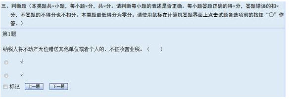 本类题共X小题,每小题X分,共X分。请判断每小题的表述是否正确。每小题答题正确的得X分,答题错误的扣X分,不答题的不得分也不扣分。本类题得分为零分。请使用鼠标在计算机答题界面上点击试题答案备选项前的按钮"○"作答。