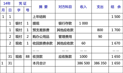 (3)现金、银行存款日记账和需要按月结计发生额的收入、费用等明细账,每月结账时,要在最后一笔经济业务记录下面,结出本月发生额和余额,在摘要栏内注明“本月合计”或“本月发生额及余额”字样,在下面通栏划单红线。