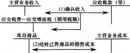 在进行销售商品收入的会计处理时,第一,在符合确认收入的条件时,贷记“主营业务收入”;