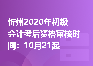 朔州2020年初级会计考后资格审核时间:10月21日-23日