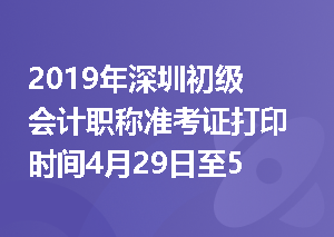 2019年深圳初级会计职称准考证打印时间4月29日至5月10日