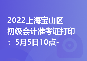 2022上海宝山区初级会计准考证打印:5月5日10点-13日24点