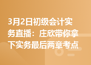 3月2日初级会计实务直播:庄欣带你拿下实务最后两章考点