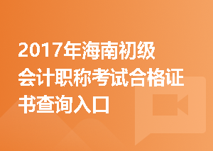 2017年海南初级会计职称考试合格证书查询入口