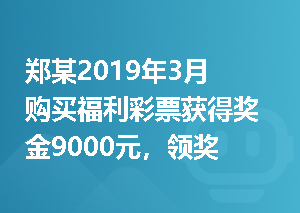 郑某2019年3月购买福利彩票获得奖金9000元,领奖时发生交通费1 50元,食宿费20元……