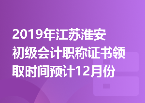 2019年江苏淮安初级会计职称证书领取时间预计12月份左右