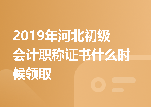 2019年河北初级会计职称证书什么时候领取?2019年初级会计职称证书领取时间一般在9月份陆续启动,具体参考当地证书领取通知!【点击查看>>各地2019年初级会计师证书领取时间】初级会计师领取流程及材料初级会计职称合格证书领取所需要的材料一般有:合格成绩单据、毕业证、从业证、身份证、照片、登记表及工本费等。各地区所需要的材料不同,具体请以当地证书领取公告中的要求为准。证书领取方式有哪些?初级会计职称证书领取方式各地区不同,往年一般是现场领取或者是由他人代领都可以,2017年起部分地区