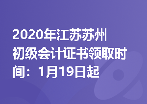 2020年江苏苏州初级会计证书领取时间:1月19日起