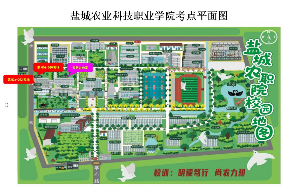 前往盐城农业科技职业学院考点线路图