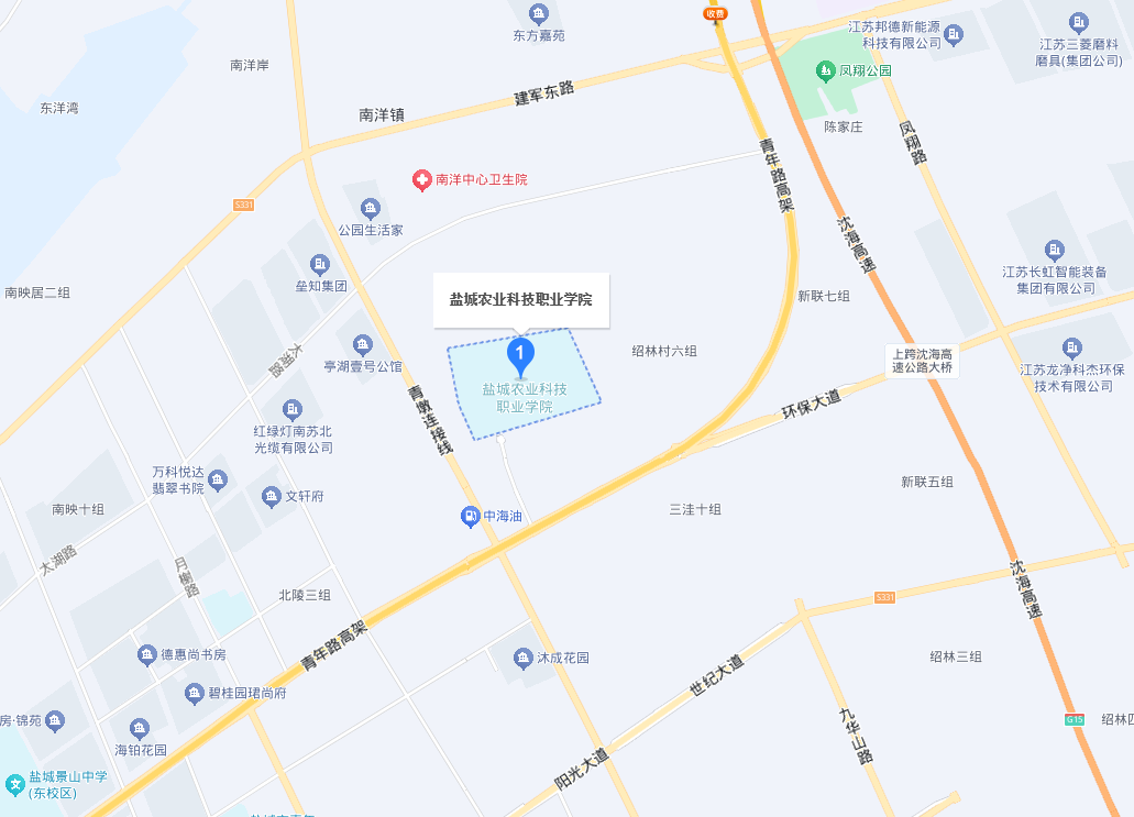 2.市区自驾车建议路线:市区青年路高架向东,从青墩连接线、学府路出口下高架,在第二个红绿灯学府路路口向北,即到盐城农业科技职业学院南门。