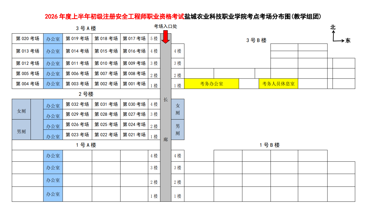 盐城考区2026年度上半年初级注册安全工程师职业资格考试考点考场区位图