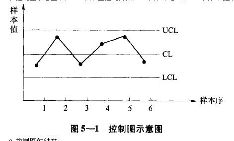 控制图是1942年由美国的休哈特首创的一种质量管理工具,被用来反映生产过程中工序质量随时间的动态变化,并以此为依据来维持生产过程的稳定性。因此,控制图又被称为管理图。控制图的基本形式如图5一1所示。