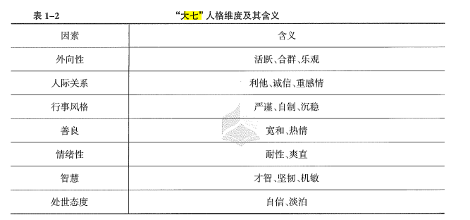 人格对职业选择、工作满意度、领导、工作绩效等方面都有影响。 |