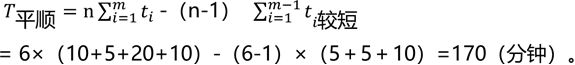 答察解析: T=6×(20+10+25+15)-(6-1)×(10+10+15)=245分钟。