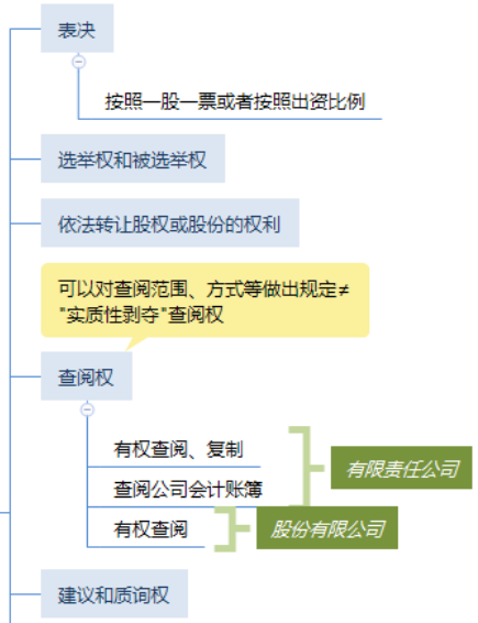 (1)有限责任公司:股东有权查阅、复制公司章程、股东会会议记录、董事会会议决议、监事会会议决议和财务会计报告。股东可以要求查阅公司会计账簿。