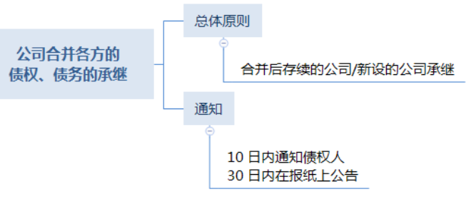 2、参与合并的公司(无论其是否消灭)必须在作出合并决议之日起10日内通知债权人,并于30日内在报纸上公告。