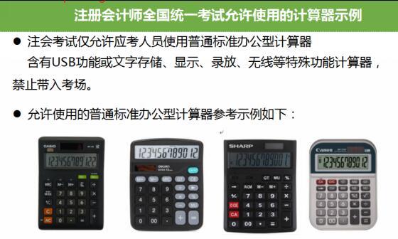 根据《注册会计师全国统一考试应考人员考场守则》第四条,应考人员可以携带蓝色或黑色钢笔、圆珠笔,铅笔,直尺,不具有文字储存及显示、录放功能的普通标准办公型计算器(如图1),不得携带手机等通讯设备和电子设备、书籍、纸张、饮品以及其他与考试无关的物品进入考场座位。