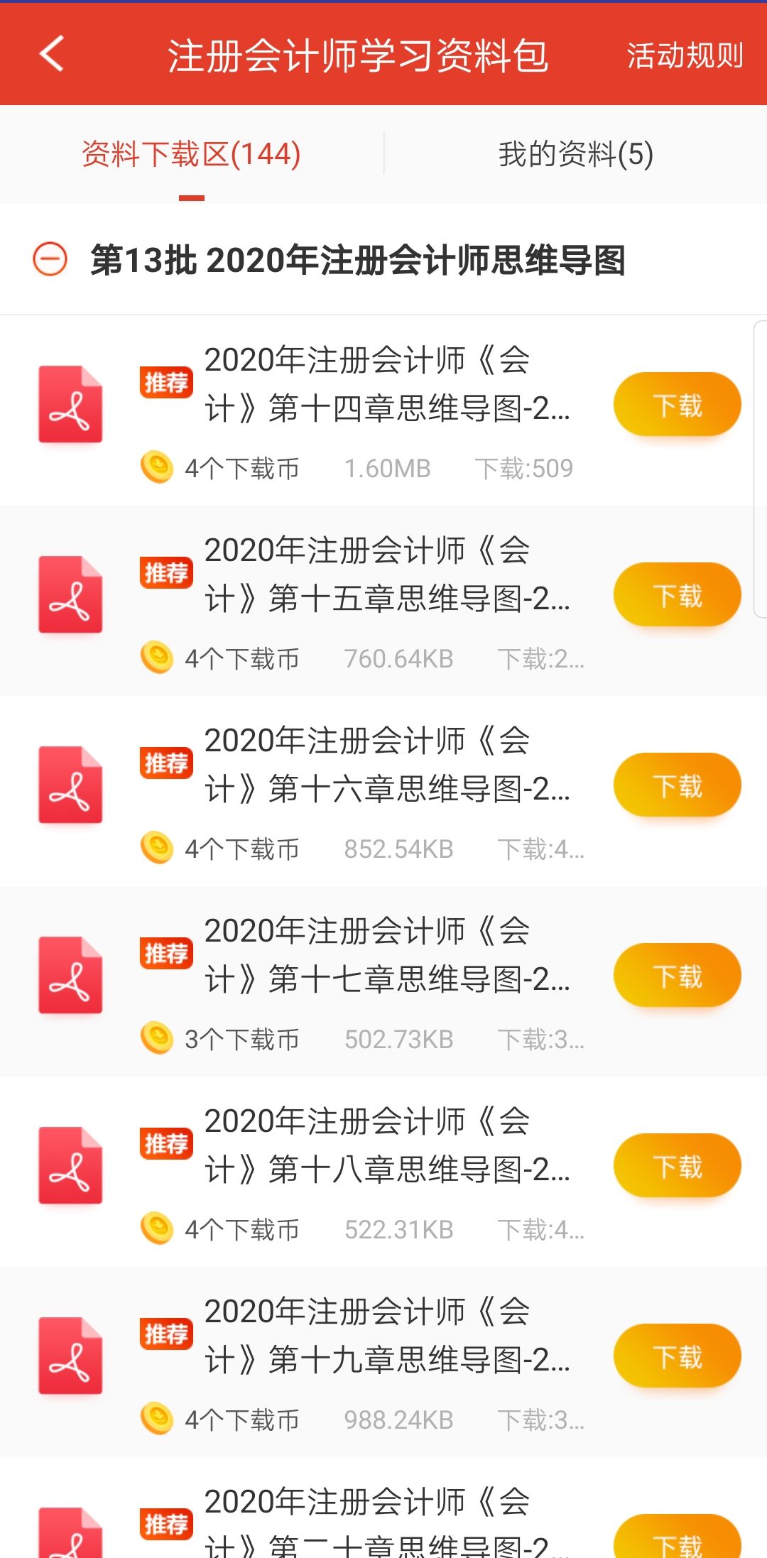 除了签到领取资料包,您也可以通过打开233网校APP——注册会计师——我的——我的资料包——选择资料下载。